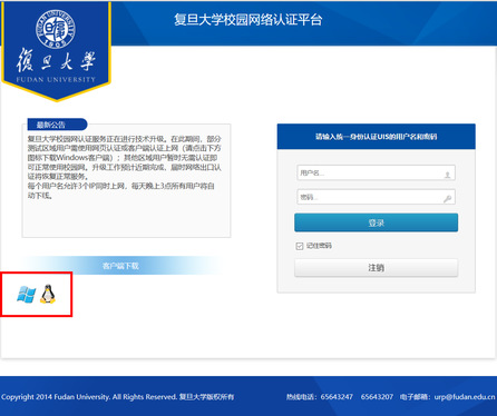 (1)打开认证页面(https://wlrz.fudan.edu.cn),如下图,选择系统相应的客户端下载安装。