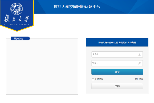 (1)访问校外地址时,自动弹出登录页面,如下图所示,使用统一身份认证(UIS)账号与密码登录。若未弹出登录页面,可在浏览器内输入https://wlrz.fudan.edu.cn,进行认证。