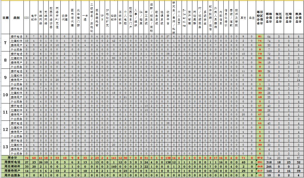 运行服务值班基本数据如下所示: