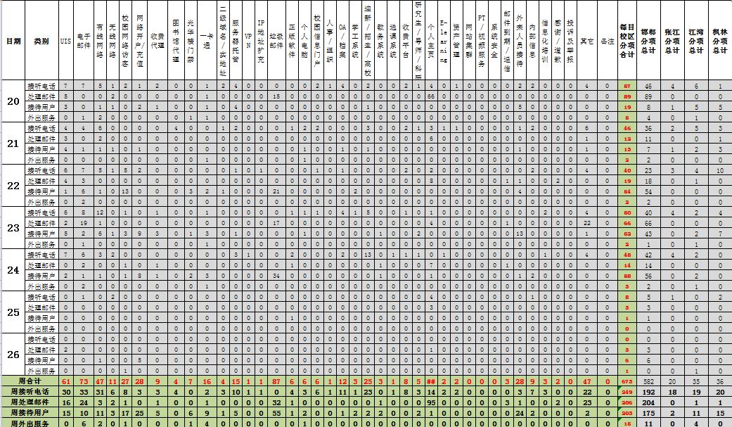 运行服务值班数据统计周报【2011年06月20日-06月26日】