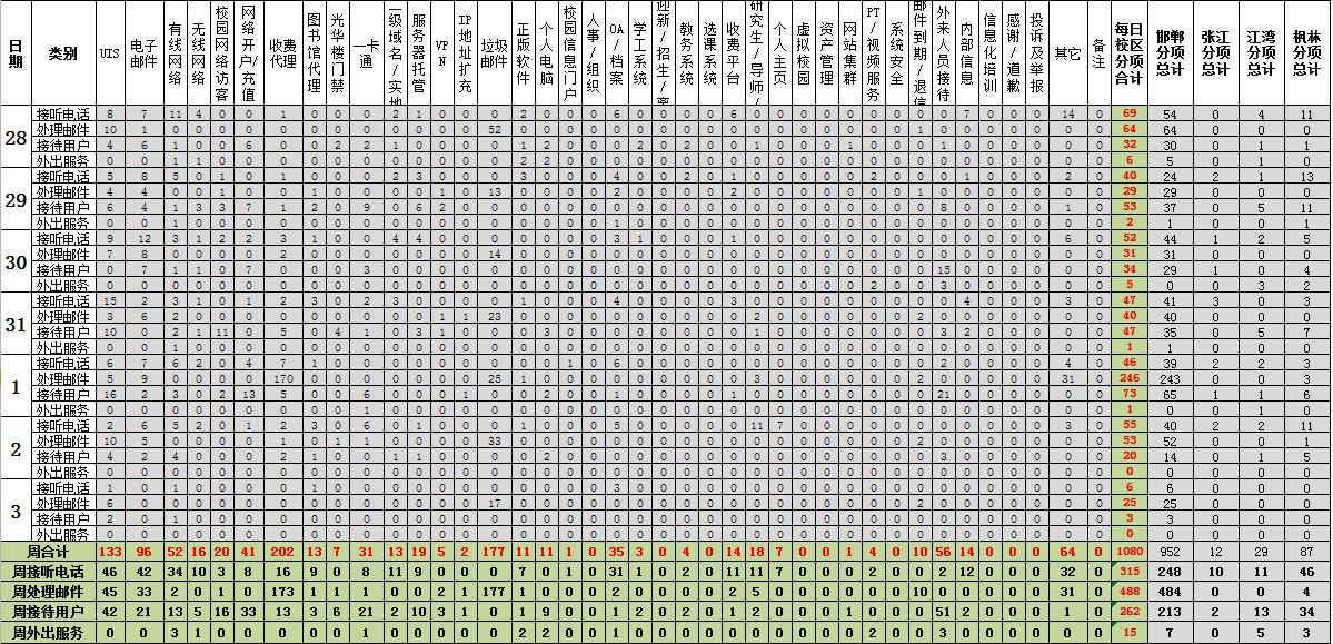 运行服务值班数据统计周报【2011年03月28日-04月03日】