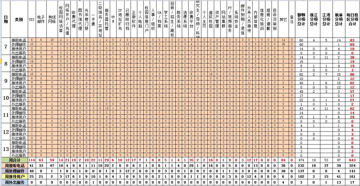 运行服务值班基本数据如下所示: