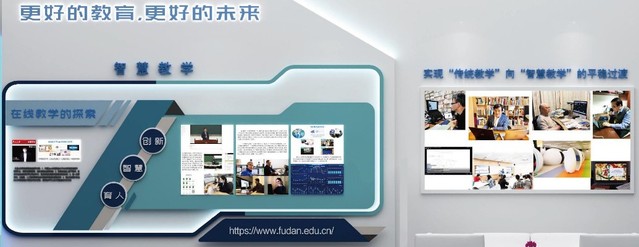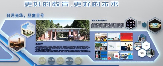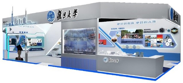 复旦大学围绕“教育让城市更美好”“教育让人生更出彩”“教育让未来更可期”三大内涵,展台设计分为四大模块,分别是:复旦大学介绍、智慧教学、虚拟仿真实验教学、《共产党宣言》展示馆。整体设计突显了复旦大学特色和红色基因,同时介绍了先进的教学理念和设施,向社会各界宣传了复旦大学!