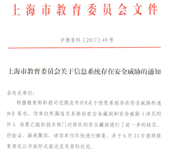 本学期,我校共发现和处理安全事件涉及网站47个,主要漏洞包括SQL注入、Strust2远程执行漏洞、暗链漏洞、弱口令、后门木马等。信息办接教育部和上海市主管部门通报后立即对安全漏洞情况进行验证和分析,根据安全漏洞影响严重程度对网站进行分级处置,有严重安全问题的立刻停止网站解析服务,通知网站负责人和管理员对安全问题进行修复,并提交漏洞修复报告。望各单位重视网站安全问题,做好自主建设网站的安全自查工作。