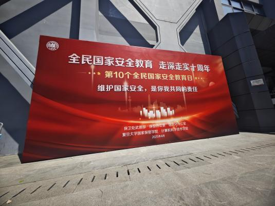 2025年4月15日是我国第十个“全民国家安全教育日”,今年的活动主题为“全民国家安全教育,走深走实十周年”。信息办与保卫处武装部、保密办公室、复旦大学国家保密学院、计算机科学技术学院联合开展“4·15”全民国家安全教育日现场宣传活动。