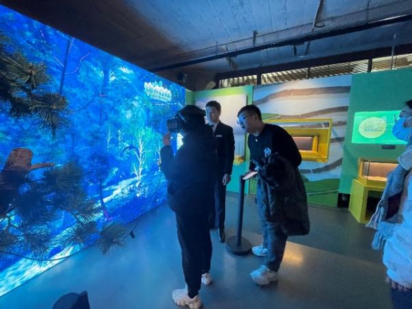 在博物馆的时光之旅中,集体参观的同志们仿佛乘坐着技能的“时光机”,穿梭于历史与未来之间。通过全息投影、人机交互、CG特效、裸眼3D、大数据可视化等大量数字化技术,党员同志们得以深入体验各种技能,开启了一场新奇好玩的沉浸式之旅:行走在森林里;自由畅快地喷漆;与元宇宙数字人互动;橱窗设计;美容美发……在沉浸式体验中感受科技赋能的力量。