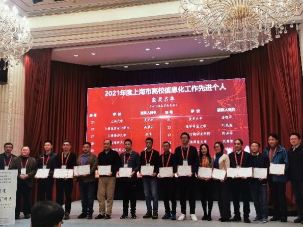 2021 年 12 月 3 日至 4 日,以“治‘数’有道,护‘数’有方-新策略、新方案推动上海高校数据安全治理迈上新台阶”为主题的上海市高等教育学会信息管理专业委员会 2021 年学术年会暨信息化建设与应用优秀案例和信息化工作先进个人颁奖大会在上海嘉定顺利召开。共有 5 项案例获得了 2021 年度上海市高校信息化建设与应用优秀案例金奖;10 项案例 获得 2021 年度上海市高校信息化建设与应用优秀案例银奖;36 位为学校信息化工作做出贡献的教师获颁 2021 年度上海市高校信息化工作先进个人奖项。