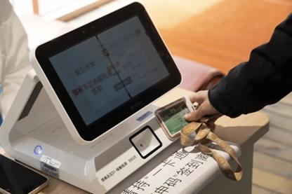 在校人员完成核酸检测后,通过一卡通签到机刷卡离开。台式签到机支持刷实体卡、复旦生活码、NFC校园联名卡三种介质。针对一些后勤人员忘记携带实体卡的情况,信息办提供手持签到机支持扫描随申码完成签到,确保全口径在校人员核酸检测数据的准确性。每场核酸检测结束,信息办组织人员对签到设备进行消杀,切断病毒传播路径,做好疫情防控必要措施。