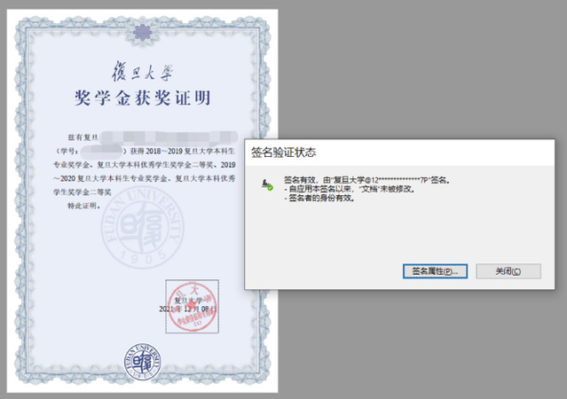 复旦大学电子签章平台于2021年上线,并陆续上线了本科生成绩单、本科生学籍证明、本科生奖学金证明、研究生成绩单、研究生学籍证明、研究生奖学金证明、教职工在职证明、博士后在站证明、研究生导师证明等共18项电子证明服务。电子签章平台提供标准的API接口,通过与复旦一站式平台对接,实现师生电子证明一键申领。
